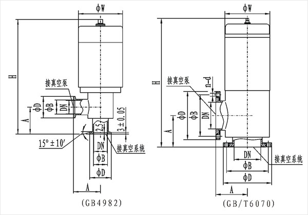 DDC-JQ-B系列電磁真空帶充氣閥連接及外形尺寸(GB/T6070) | |