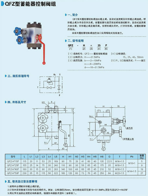 QFZ型蓄能器控制閥組技術(shù)參數(shù)