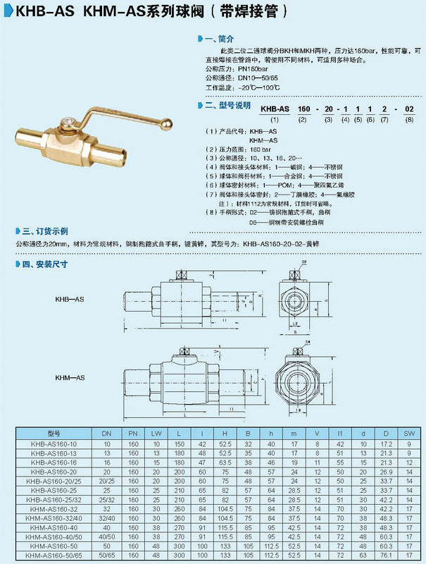 KHB-AS KHM-AS系列球閥(帶焊接管)技術(shù)參數(shù)