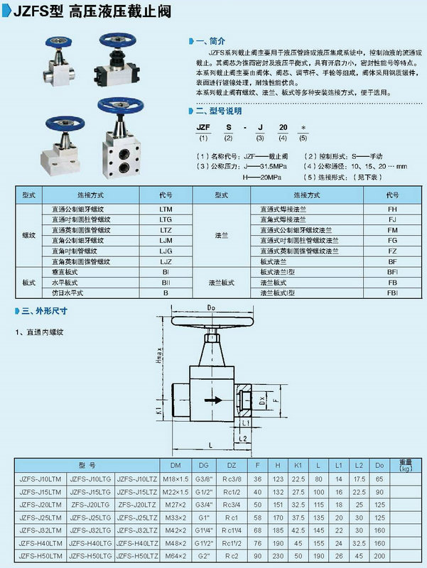 JZFS型高壓液壓截止閥技術(shù)參數(shù)