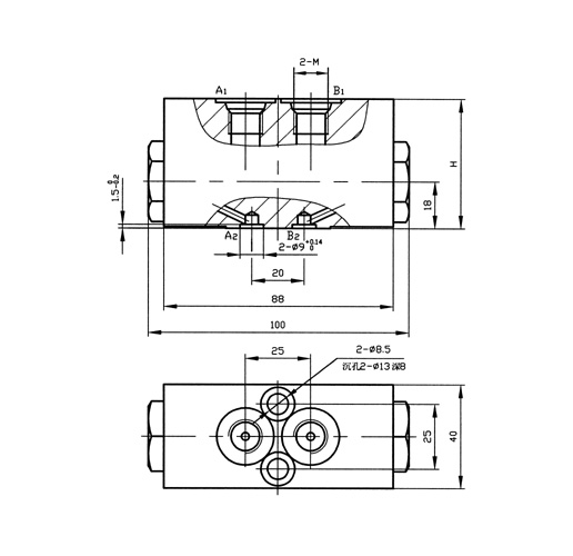 YSS-6型雙向液壓鎖圖形符號  YSS-6型雙向液壓鎖技術(shù)參數(shù)公稱壓力:32Mpa 公稱通徑:6mm 額定流量:25L/min 適用介質(zhì):液壓油 YSS-6型雙向液壓鎖外形尺寸