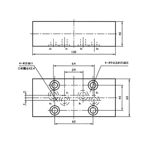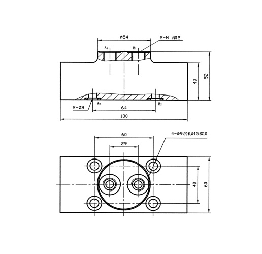 F42型雙向液壓鎖圖形符號  F42型雙向液壓鎖技術參數(shù)公稱壓力:32Mpa 公稱通徑:8mm 額定流量:40L/min 適用介質(zhì):液壓油 F42型雙向液壓鎖外形尺寸