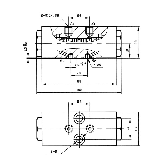 YS6型雙向液壓鎖圖形符號  YS6型雙向液壓鎖技術(shù)參數(shù)公稱壓力:32Mpa 公稱通徑:6mm 額定流量:25L/min 適用介質(zhì):液壓油 YS6型雙向液壓鎖外形尺寸